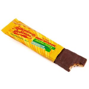 When you need a quick, energy-boosting snack, this gluten free peanut butter bar by Ridiculously Delicious delivers. It’s nutty, chewy, and packed with roasted peanuts, chia seeds, and peanut butter, all coated in dark chocolate. Keep one in your bag for a post-workout boost or a busy day while running errands. Try chopping it up and mixing it into plain Greek yogurt for a protein-packed treat that’s far more exciting than plain yogurt alone.