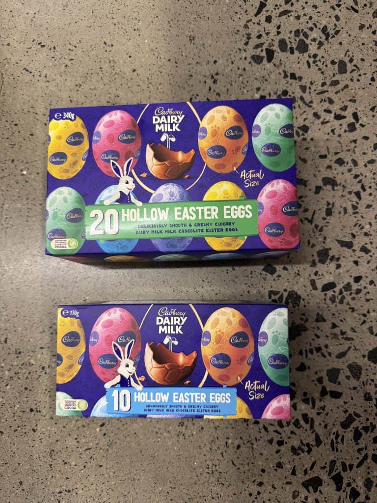 Easter just wouldn’t be complete without the iconic chocolate bunny. Cadbury offers the two classic versions made from their signature milk chocolate, but we also spotted an Old Gold version for dark chocolate lovers who prefer something richer.