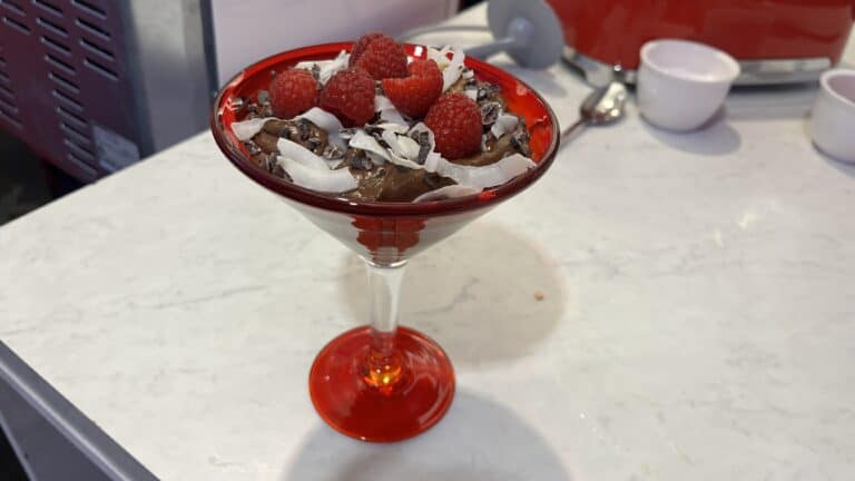- Divide the mousse into bowls and top each with roughly chopped nuts, cacao nibs, and shredded coconut.